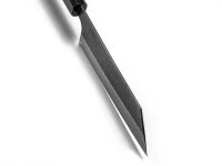 Das Messer sollte grundsätzlich gerade mit ziehendem oder schiebendem Schnitt geführt werden, ohne großen Druck. Vermeiden Sie, um die Schärfe zu erhalten, auf Stein, Glas oder anderen harten Unterlagen zu schneiden. Zum Nachschärfen auf keinen Fall „Wetzstahl“ verwenden. Empfohlen werden Wasserschleifsteine (Körnung: 400-1200 für Vorschliff, 3000 für den Feinschliff, 6000 oder mehr, um die Klinge abzuziehen) und ggf. ein Abziehleder.