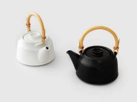 Teekanne von Tatsumi Kato (ceramic japan), traditionell von Hand gefertigt, in modernem Design. Die Manufaktur hat ihren Sitz in Seto, Präfektur Aichi. Dort, wo traditionell Töpferware hergestellt wird, da diese Region mit einem besonders hochwertigen Töpferkitt ausgestattet ist. Es ist das einzige Töpferzentrum in Japan, das eine Glasur verwendet, die seit der Kamakura-Zeit, seit über 1000 Jahren, eingesetzt wird. Die vielfach prämierte Manufaktur zeichnet sich durch ihre bewusst enge Zusammenarbeit von modernen Designern mit traditionellen Kunsthandwerkern aus. Das Ergebnis sind Produkte, die die Welt noch nicht gesehen hat. Neue Formen von hoher Ästhetik aber auch höchstem Gebrauchswert und bester Qualität. Die Unterschiede zu preiswerter Massen- und Industrieware sind nicht nur sichtbar sondern – so Tee-Kenner – auch im Geschmackserlebnis deutlich erfahrbar.