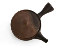 Tokoname ist der bekannteste und größte der alten Öfen für die Tonherstellung. Der gute Ruf reicht weit über die Landesgrenzen Japans hinaus. In dem vielfältigen Angebot von Ton-Produkten spielen japanische Teekannen eine der wichtigsten Rolle. In Tokoname wird ein roter, natürlicher Ton gefördert: Shudei. Dass es Teekannen unterschiedlicher Farbe aus rotem Ton gibt, liegt an der eingesetzten Brennmethode, Reduktionsbrand oder Oxidationsbrand, und der Menge an Sauerstoff, die beim Brennen zugeführt wird. Der Ton regiert sehr sensibel, so dass hochwertige Produkte nur denen gelingen, die viel Erfahrung und Fingerspitzengefühl haben. Die Geschichte von Tokoname reicht weit zurück. Bereits im 12’ten Jahrhundert ging der Ofen in Betrieb und ist damit einer der ältesten in Japan überhaupt. In den Anfängen wurde in Tokoname weißer Ton, von den Reisfeldern gewonnen, eingesetzt. Doch ca. 1954 hat Sugie Jyumon zusammen mit einem Arzt – Hirano Chuji – entdeckt, dass der natürliche rote Ton von Tokoname eine hervorragende mineralische Zusammensetzung aufwies. Damit war die Karriere des roten Tons vorgezeichnet. Eine besondere Art der Verzierung, die typisch für Teekannen aus Tokoname ist, wird Mogake-Technik genannt. Erfinder war Ina Chozo, der Teekannen mit Algen umhüllte, bevor sie gebrannt wurden. Während des Brennens reagierten die Mineralien der Algen und des Tons und „formten“ einzigartige Muster auf der Oberfläche.