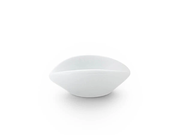 Schälchen für Sojasauce der Geschirrserie So-So aus feinem Porzellan. So-So ist eine Geschirrserie, die durch ihre edle Zurückhaltung, ihr sensibles Erscheinungsbild völlig souverän eine Tafel dominieren kann. Die Formen sind neu, aber voller Harmonie. Das weiße Porzellan wirkt transparent, ist aber in keiner Weise dünnhäutig. Es hat aufgrund der hohen handwerklichen Qualität eine außergewöhnliche Widerstandskraft. Der leichte blaue Schimmer, ein Erkennungsmerkmal der in hat traditioneller Weise gefertigten So-So Serie, bietet dem Betrachter eine Tiefe, die fast schon spirituell ist. Jede Schale, jeder Teller ist ein Unikat. Von Hand gefertigt. Von zeitloser Schönheit. Viele Einzelteile der Manufaktur sind mit Designpreisen bedacht worden und Bestandteil der ständigen Ausstellung des Museum of Modern Art, New York.