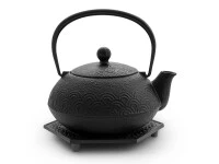 und der Tetsubin, iron kettle, miteinander verwechselt werden. Es gibt nur wenige, sehr gute Kombimodelle, NAMI AOMI ist eines der schönsten. Wasser kochen, etwas abkühlen lassen, Tee aufgießen – die praktische Lösung für die Liebhaber des authentischen Teetrinkens. Das integrierte Edelstahlsieb macht es möglich die Teeblätter nach dem ersten Aufguss heraus zu nehmen, NAMI AOMI hält den Aufguss auf Temperatur. NAMI AOMI ist nicht emailliert, so dass der Tee das gesunde Eisen und die Mineralstoffe der Teekanne ungehindert aufnehmen kann. Genießen Sie einen reichen Teegeschmack.