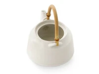 Teeset, bestehend aus Teekanne und 5 Teeschalen. Design von Tatsumi Kato (ceramic japan), traditionell von Hand gefertigt, in modernem Design. Die Manufaktur hat ihren Sitz in Seto, Präfektur Aichi. Dort, wo traditionell Töpferware hergestellt wird, da diese Region mit einem besonders hochwertigen Töpferkitt ausgestattet ist. Es ist das einzige Töpferzentrum in Japan, das eine Glasur verwendet, die seit der Kamakura-Zeit, seit über 1000 Jahre, eingesetzt wird. Die vielfach prämierte Manufaktur zeichnet sich durch ihre bewusst enge Zusammenarbeit von modernen Designern mit traditionellen Kunsthandwerkern aus. Die Ergebnisse sind Produkte, die die Welt noch nicht gesehen hat. Neue Formen von hoher Ästetik aber auch höchstem Gebrauchswert und bester Qualität. Die Unterschiede zu preiswerter Massen- und Industrieware ist nicht nur sichtbar sondern – so Tee-Kenner – auch im Geschmackserlebnis deutlich erfahrbar.